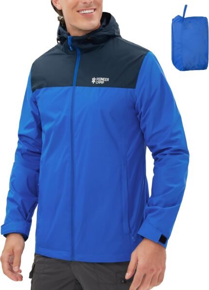 Pioneer Camp Men’s Rain Jacket Waterproof with Hood Lightweight Packable Raincoat Rain Shell for Outdoor Hiking Travel