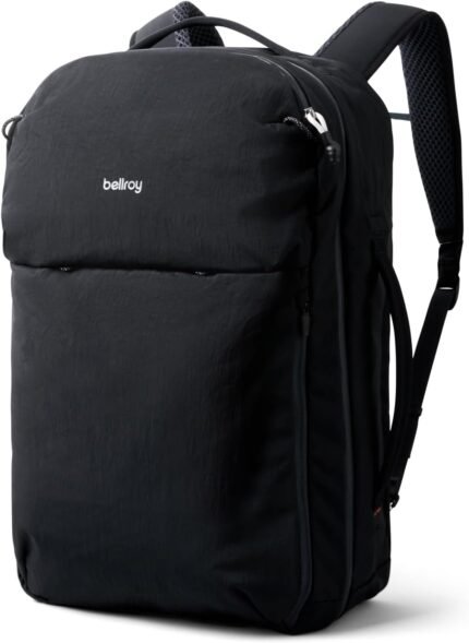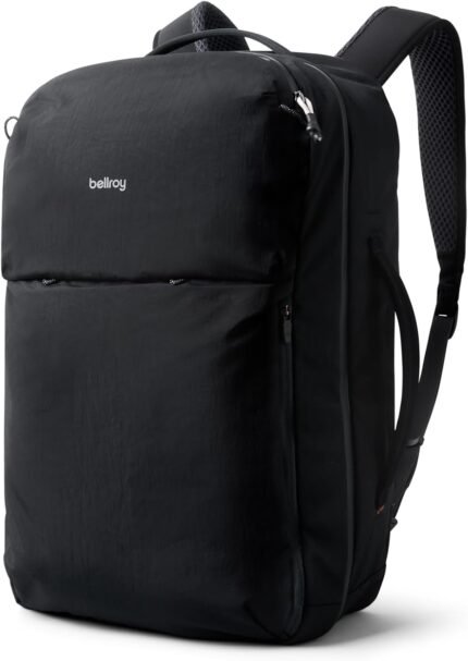 Bellroy Lite Travel Pack 38L (carry-on backpack, large travel backpack for international travelers, with laptop pocket, interior packing cells and tuck-away shoulder straps) – Black