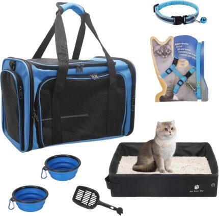 Cat Carrier Soft-Sided & Foldable Cat Travel Litter Box, Fit for Pet Up to 20Lbs, 17.7′ * 11.8 * 11.8 inches Cat Bag for Traveling & Camping, Cat Travel Carrier Kit