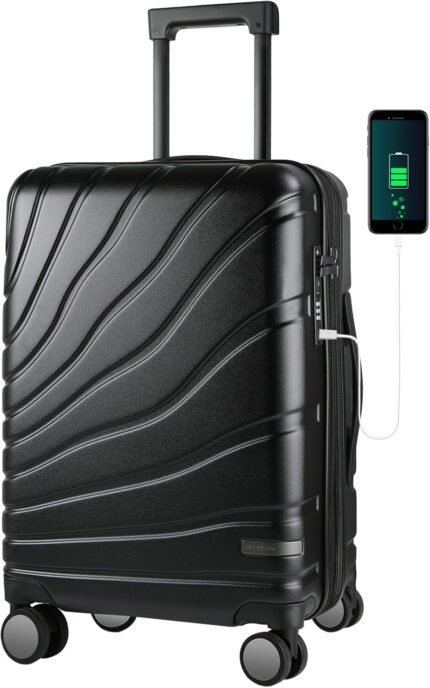 VANKEAN Carry On Luggage with Spinner Wheels & TSA Lock, Expandable Fashionable Hard Shell Suitcase airline approved,20 Inch Carry-On,Black