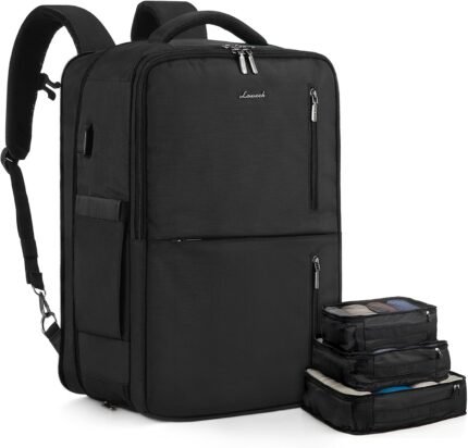 LOVEVOOK 40L Travel Backpack for Women & Men, Large Carry on Backpack for Airplanes with 3 Packing Cubes, TSA Personal Item Travel Bag fits 17″ Laptop, Waterproof Travel Essentials Airline Approved