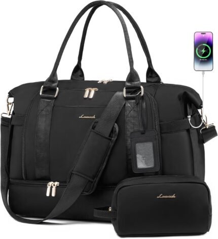 Price: (as of – Details) 【LARGE CAPACITY TRAVEL BAG WITH USB CHARGING PORT+SHOE COMPARTMENT+FREE SEPERATE TOILETRY BAG】this travel bags for