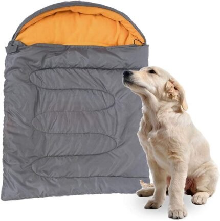 Dog Sleeping Bag Waterproof Warm Packable Dog Bed Mat with Storage Bag for Indoor Outdoor Travel Camping Hiking Backpacking(Grey+Orange, L)