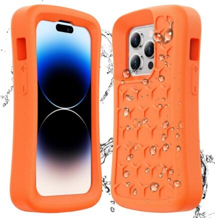 SPIDERCASE Floating Phone Case for iPhone 16 Plus/15 Pro Max/14 Plus/13 Pro Max/12 Pro Max with Waterproof Dry Bags, Lanyard, EVA Foam, 6.7″, Orange