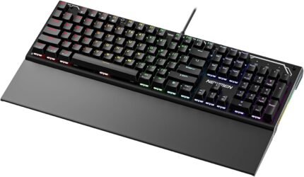 Price: (as of – Details) Product Description Newmen GM101 Mechanical Gaming Keyboard with Wrist Rest,RGB LED Backlit 104 Anti-Ghosting Keys