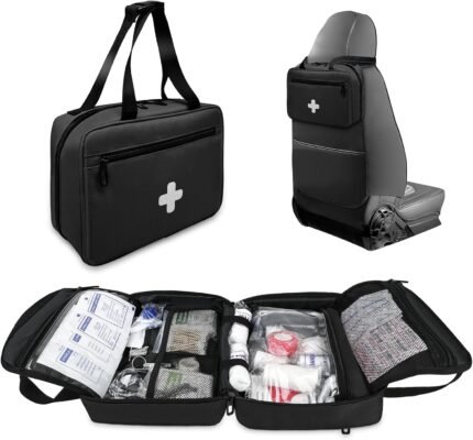 Home-First-Aid-Kit-for-Car-Travel-Camping-Businesses Survival, Labelled Compartment Comprehensive Emergency Trauma Medical Kit with Tourniquet, Ideal for Boat, Vehicles, Truck, Hiking
