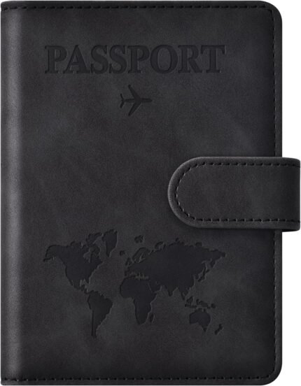 Eoehro Passport Holder for Travel Essentials, Passport Wallet Cover Case for Travel Must Haves Accessories,Passport Book Holders for Women and Men(black)