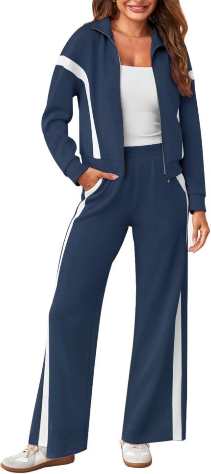 MEROKEETY Women’s 2 Piece Outfits Color Block Sweatsuit Zip Up Sweatshirt Wide Leg Sweatpant Tracksuit Lounge Travel Set