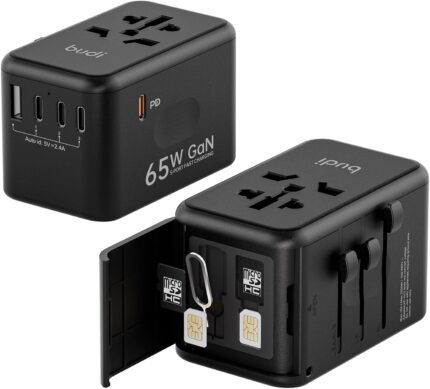 Universal Travel Adapter with MicroSD Card Case TF Card Holder Storage International Plug Adapter with 6 in 1 Adapter Fast Charging Adapter Wall Charger for Europe UK EU AUS/US and JP