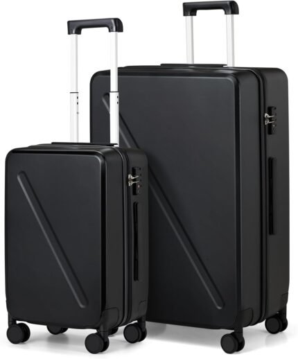 MILADA 2 Piece Luggage Sets With Spinner Wheels, Travel Luggage TSA Approved Hard Shell Luggage Sets, 20 Inch Carry On Suitcase 28 Inch Large Luggage For Women Men, Black