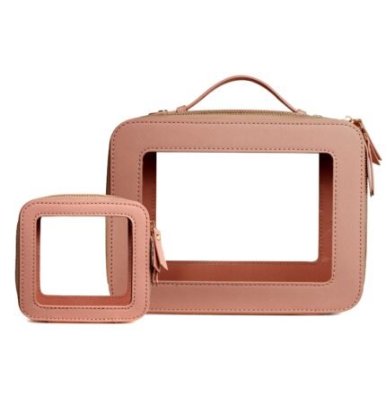 Clear Makeup Bags TSA Approved Toiletry Bag Handle Large Opening,Clear Toiletry Bags for Carry-on Traveling Travel Car Accessories Essentials Organziation Storage Women Girls(Nude Pink, Mini&Large)