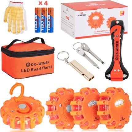 LED Road Flares Roadside Emergency car kit Emergency Road Flares Kit with Magnetic Base for Vehicles & Boat | 9 Flash Modes(with Batteries) (4Pack-Tool Kit)