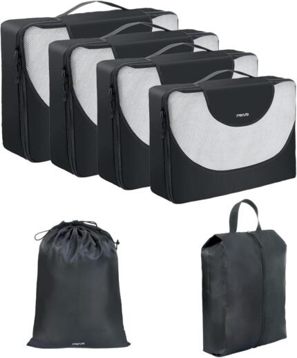 MOSISO 6 Set Packing Cubes for Travel Essentials, Suitcase Organizer Bags Set for Luggage, Light Weight Space-Saving Travel Accessories Expandable Packing Organizer Divider Road Trip Bags, Black