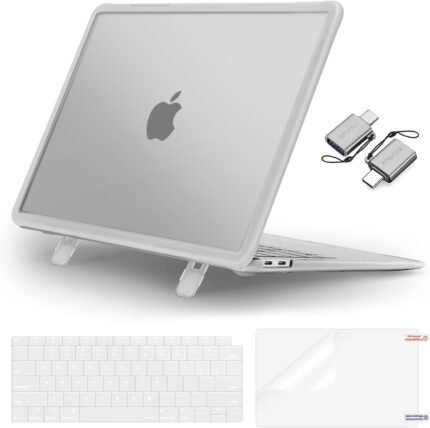 MOSISO Compatible with MacBook Air 13 inch Case 2022, 2021, 2020-2018 A2337 M1 A2179 A1932, Heavy Duty Shockproof Plastic Hard Case with Fold Kickstand&Keyboard Skin&Screen Film&Type C, Translucent