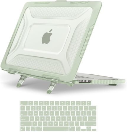 MOSISO Compatible with MacBook Air 15 inch Case 2025 2024 2023 M4 A3241 M3 A3114 M2 A2941, Honeycomb Shockproof Heavy Duty TPU Bumper Plastic Hard Case with Fold Kickstand&Keyboard Cover, Sage Green