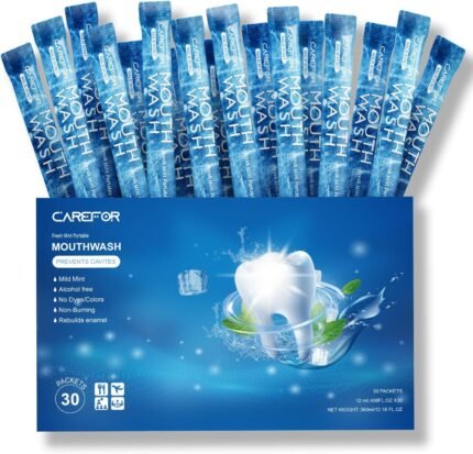 Mouthwash Travel Size, Portable Fresh Breath Mouthwash, Alcohol-Free, ICY Mint Flavor, Mini Pack – Mouthwash to Go for On-The-Go Freshness, Bulk Packets 0.41 Fl Oz (Pack of 30)