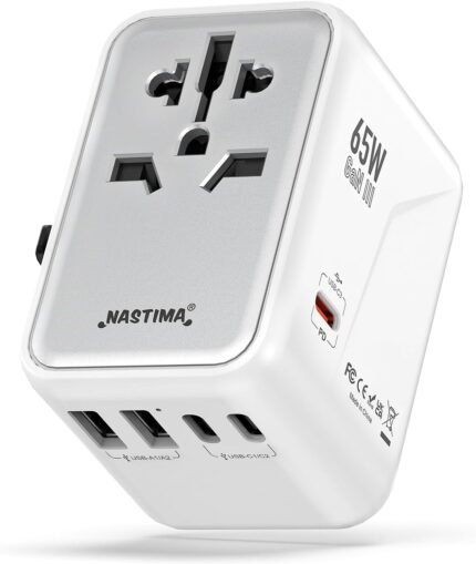 NASTIMA 65W Universal Travel Adapter Worldwide, 3USB-C PD & 2USB-A QC Travel Charger, GaN III Technology for Laptops Tablets Phones with UK,EU,AU,US Plugs (Type G/C/I/A)