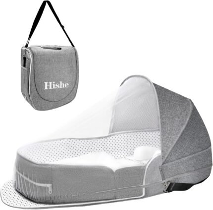 Baby Travel Bassinet Portable Bassinets: Foldable Lightweight Travel Pod Infant Co-Sleeper Bed with Mosquito and Canopy Outdoor Newborn Essentials Gift