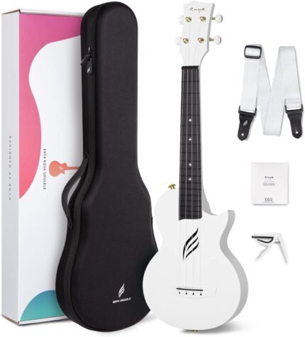 Enya Concert Ukulele Nova U 23’’ Carbon Fiber Travel Ukulele with Beginner Kit includes online lessons, case, strap, capo and strings (White)