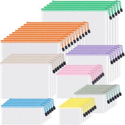 50 Pieces Multi-Size Zipper Pouches Bags, 8 Size 8 Colors Letter Size Small Colorful Organized Mesh Zipper, Mesh Bags with Zipper for Travel Accessories Office & Home Organization