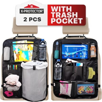 X-Protector 2 PCS Set – Unique Backseat Car Organizer with Trash Bag Pocket – Black – Ideal Car Storage for Long Trips!