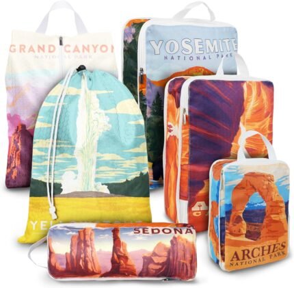 Compression Packing Cubes for Travel, 6 Set National Park Luggage Organizers, Lightweight Waterproof Expandable/Compression Bags Smell Proof Travel Packing Cubes for Suitcases