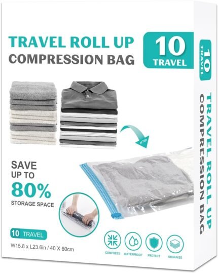 10 Pack Space Saver Vacuum Storage Bags Travel Vacuum Bags for Luggage Clothing Compression Bags for Travel Essentials No Vacuum or Pump Needed