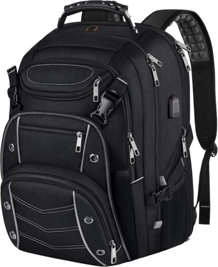 VECKUSON 18.4 Laptop Backpack for unisex, 60L Extra Large Gaming Laptops Back Bag with USB Charger Port,TSA Friendly Flight Approved and RFID Anti-Theft Pocket Heavy-duty Pack,21.3*15.7*11.8inch Grey