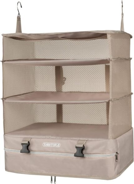 TABITORA Portable Hanging Travel Shelves Bag Packing Cube Organizer Suitcase Storage Large Capacity (Beige XL)…