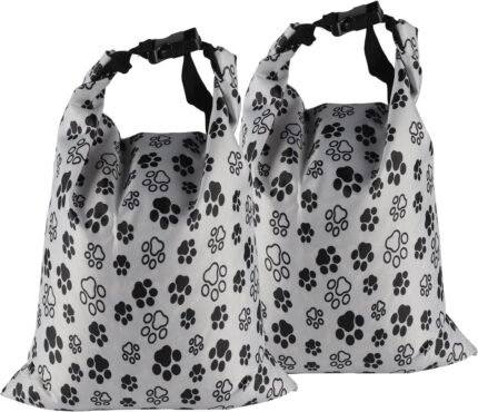 2 Packs Dog Food Travel Bag,10Lbs Dog Travel Food Container,Reusable Pet Stuff Bag,Dog Camping Essentials-White/Black Paw