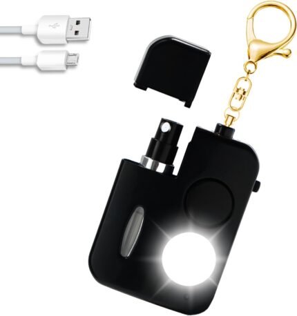 Personal Safety Alarm for Women, Rechargeable Security Alarm Keychain with USB Cable, 130dB Siren, Strobe Light, Low Battery Indicator, Perfume Personal Alarm for Women, Kids, Elderly