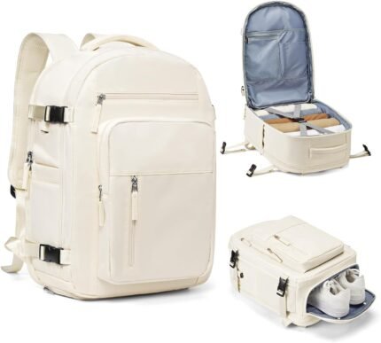 Lightweight Travel Backpack For Women Men Carry On Backpack Flight Approved Travel Bag Personal Item Waterproof Luggage Backpack With Shoe & Laptop Compartment(Beige)
