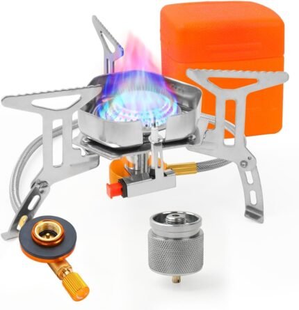 WADEO 7200W Windproof Camping Stove, Camping Gas Stove with Piezo Ignition, Two Fuel Canister Adapter, Carry Case, Portable Stove, Backpacking Stove for Outdoor Backpacking Hiking and Picnic