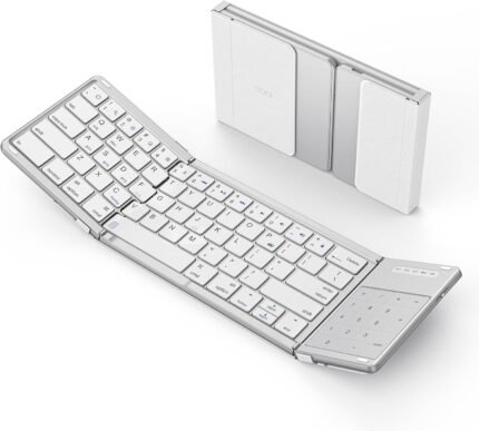 iClever Foldable Keyboard, BK08 Bluetooth Keyboard with Sensitive Touchpad (Sync Up to 3 Devices), Tri-Folding Pocket-Sized for Windows Mac Android iOS