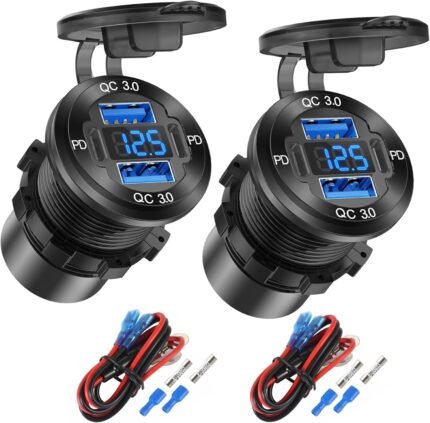 2 Pack 12V USB Outlet 4 Port Car Charger, 78W Super Fast Dual PD3.0 & QC3.0 Multiple USB Port for Car, USB C Cigarette Lighter Replacement 12 Volt Socket Waterproof for Marine Boat Motorcycle RV Golf