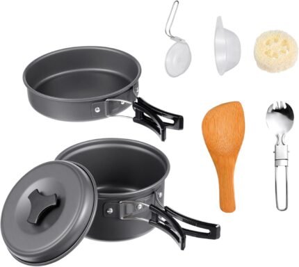 1-2 Person Camping Cookware Set Portable Outdoor Cooking Equipment Camp Cooking Gear Camping Pots Bbq Accessories