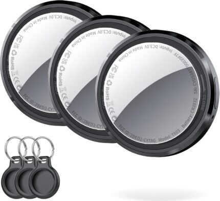 Air Tags, Bluetooth Trackers Work with Apple Find My (iOS Only), Smart Tag with Protective Case/Keychain, Item Finders for Luggage/Key/Suitcases/Backpack, Replaceable Battery, IP68 Waterproof