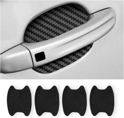 4PCS Sticker, Carbon Fiber Anti-Scratches Car Door Cup Protector, Non-Marking Auto Door Handle Protective Film, Universal for Most Car Handles (Black/4PCS)
