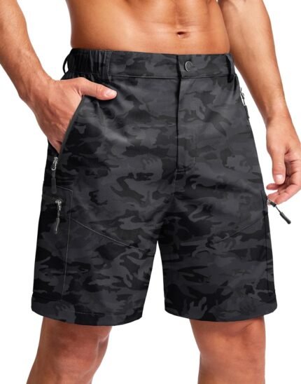 Pudolla Men’s Hiking Cargo Shorts Lightweight 7″ Travel Casual Shorts for Men Golf Work Outdoor with 5 Zipper Pockets