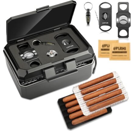 Price: (as of – Details) Product Description [Travel Humidor Set] LIHTUN 3-layer cigar humidor is equipped with 2 cigar cutters,
