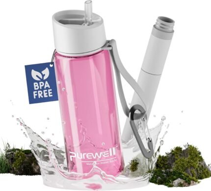 Purewell Filtered Water Bottle BPA Free with 4-Stage Integrated Filter Straw for Camping, Hiking, Backpacking and Travel