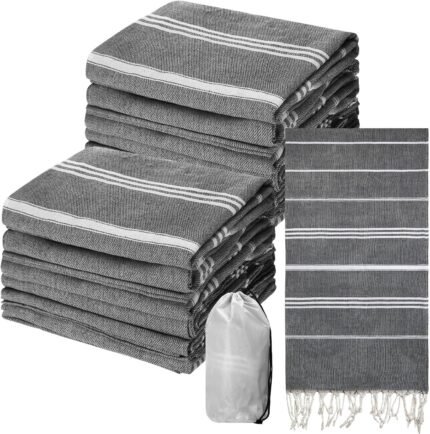 Mixweer Turkish Beach Towel with Travel Bag Bulk 39″ x 71″ Oversized Soft Cotton Beach Towel Sand Free Quick Dry Lightweight Travel Accessories Essential (Black Gray,12 Sets)