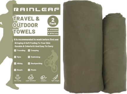 Rainleaf 2 Pack Microfiber Quick Dry Travel Towel, Super Absorbent Ultra Compact Lightweight Camping Towel for Gym, Hiking, Pool, Yoga – Army Green