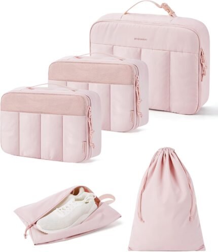 BAGSMART Packing Cubes for Travel Women, Large Capacity Hanging Packing Cubes for Suitcases, Quilted Travel Essentials for Women, Light Pink