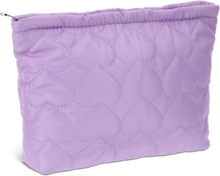 Heart Quilted Cosmetic Bag, Portable Cosmetic Bags for Women, Travel Cosmetic Bag Organizer with Zipper, Cute Make Up Organize Accessories for Travel Size Toiletries Makeup Brushes (Purple)