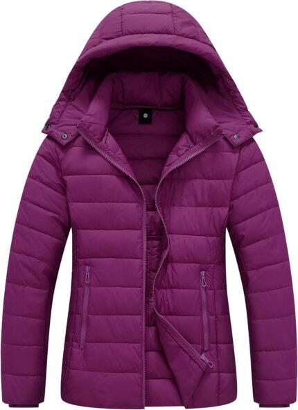wantdo Women’s Plus Size Lightweight Jackets Full-Zip Quilted Warm Jacket with Hood
