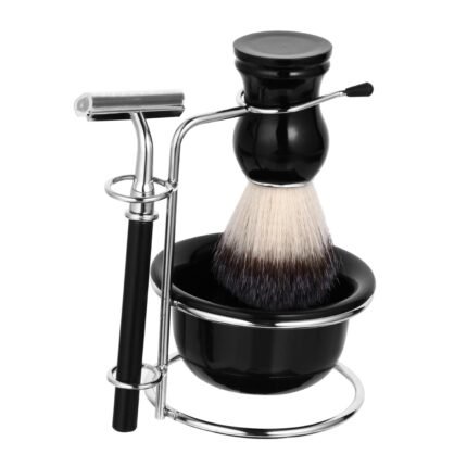 4Pcs Men’s Shaving Kit Shaving with Ergonomic Razor Soft Beard Brush Soap Bowl Holder for Comfortable Grooming Experience Travel Friendly Space Saving Design