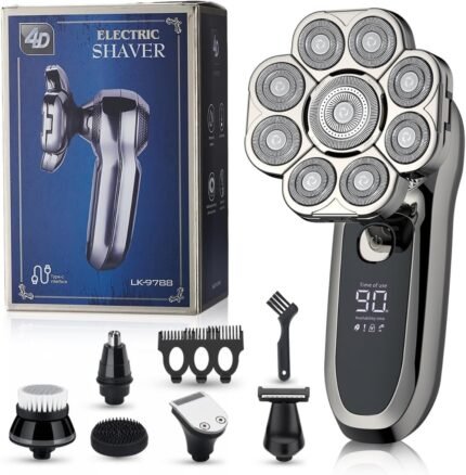 9 Floating Heads Detachable Head Shavers,6 in 1 Electric Razor IPX6 Waterproof for Bald Men, Wet Dry Mens Grooming Kit,LED Display Rechargeable 9D Rotary Shaver Grooming Kit with Type-C Charge