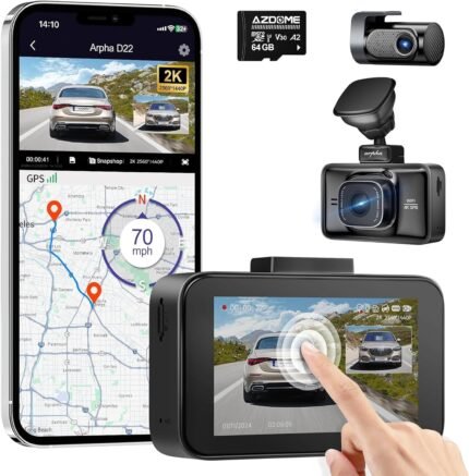 Dash Cam Front and Rear, Free 64GB Card, 3” Touch Screen Driving Recorder Built-in WiFi GPS, Voice Control, WDR Night Vision, G-Sensor Parking Mode, Loop Recording (D22)