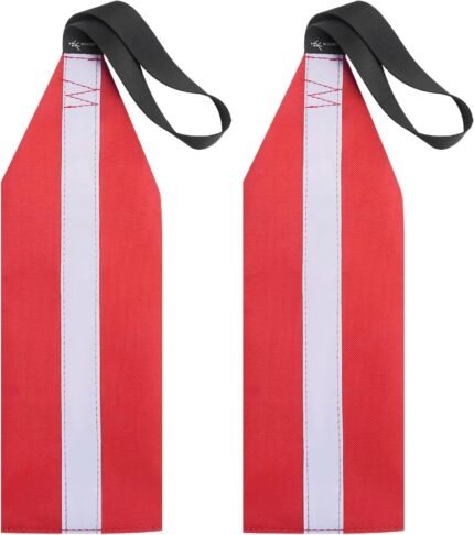 2 Pcs Kayak Safety Flag, Travel Red Warning Flag with Webbing for Kayak SUP Towing Canoe, Travel Trailer, Truck Safety Accessories Kit